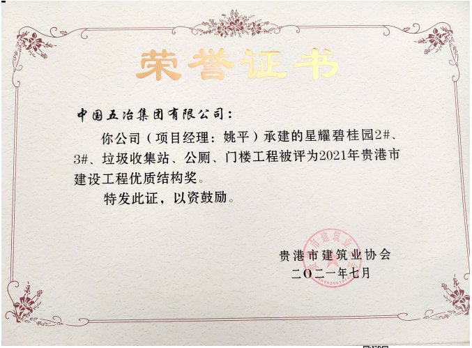 星耀碧桂園2#、3#、垃圾收集站、公廁、門樓工程—2021年貴港市建設(shè)工程優(yōu)質(zhì)結(jié)構(gòu)獎