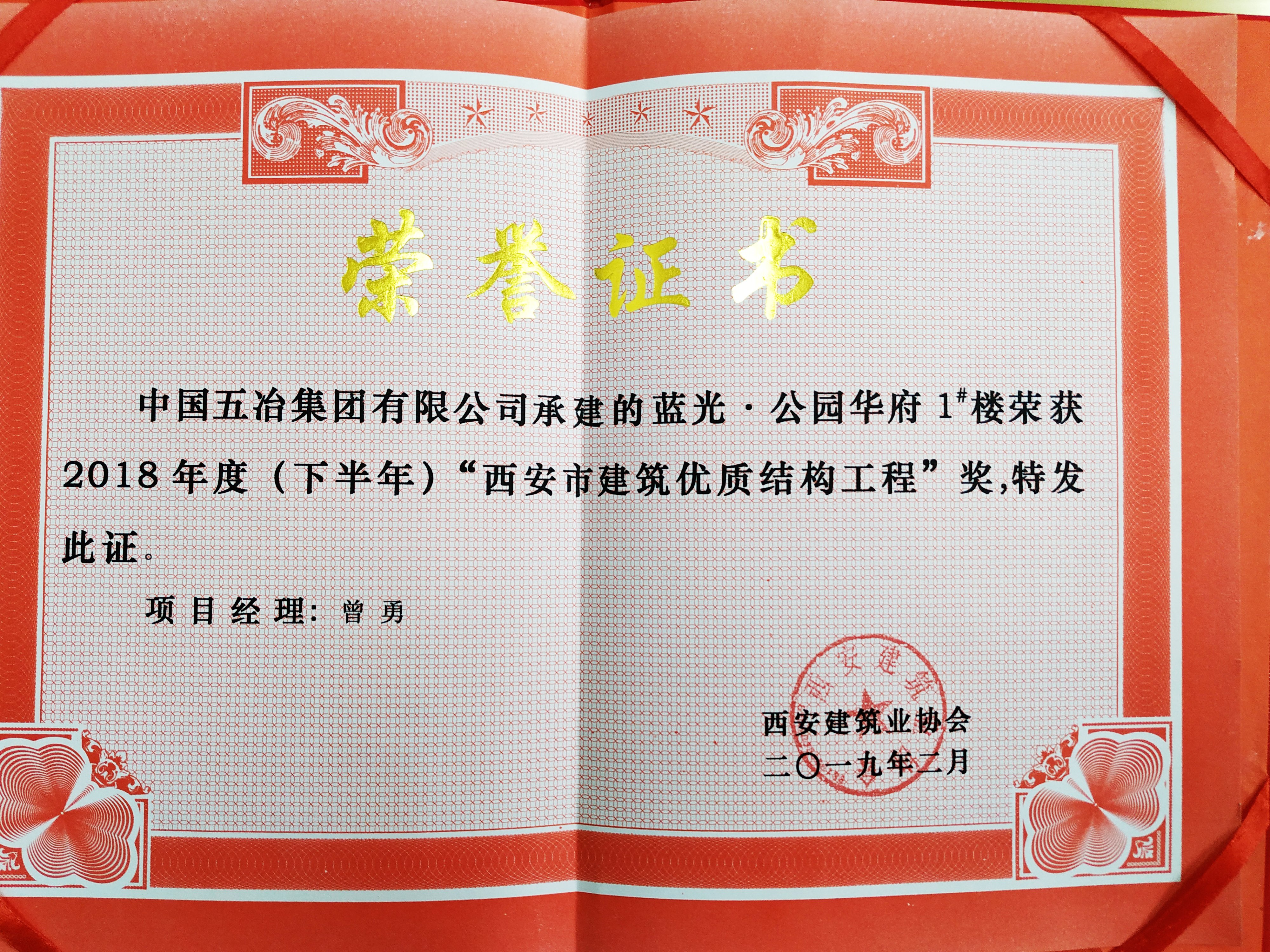 西安藍(lán)光.華府公園一期1號樓—2018年度(下半年)西安市結(jié)構(gòu)優(yōu)質(zhì)