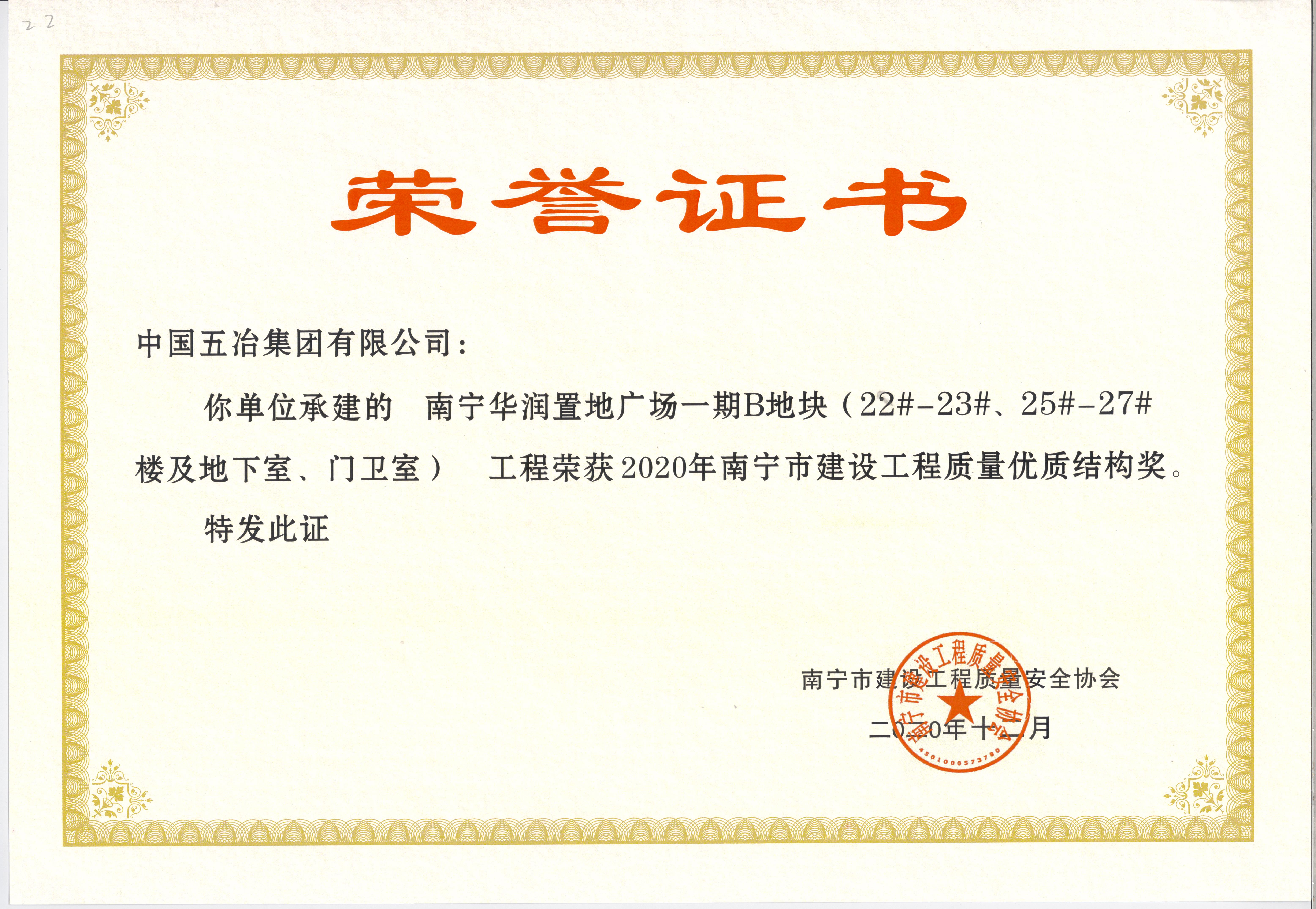 南寧華潤置地廣場一期B地塊—2020年南寧市建設(shè)工程質(zhì)量優(yōu)質(zhì)結(jié)構(gòu)獎