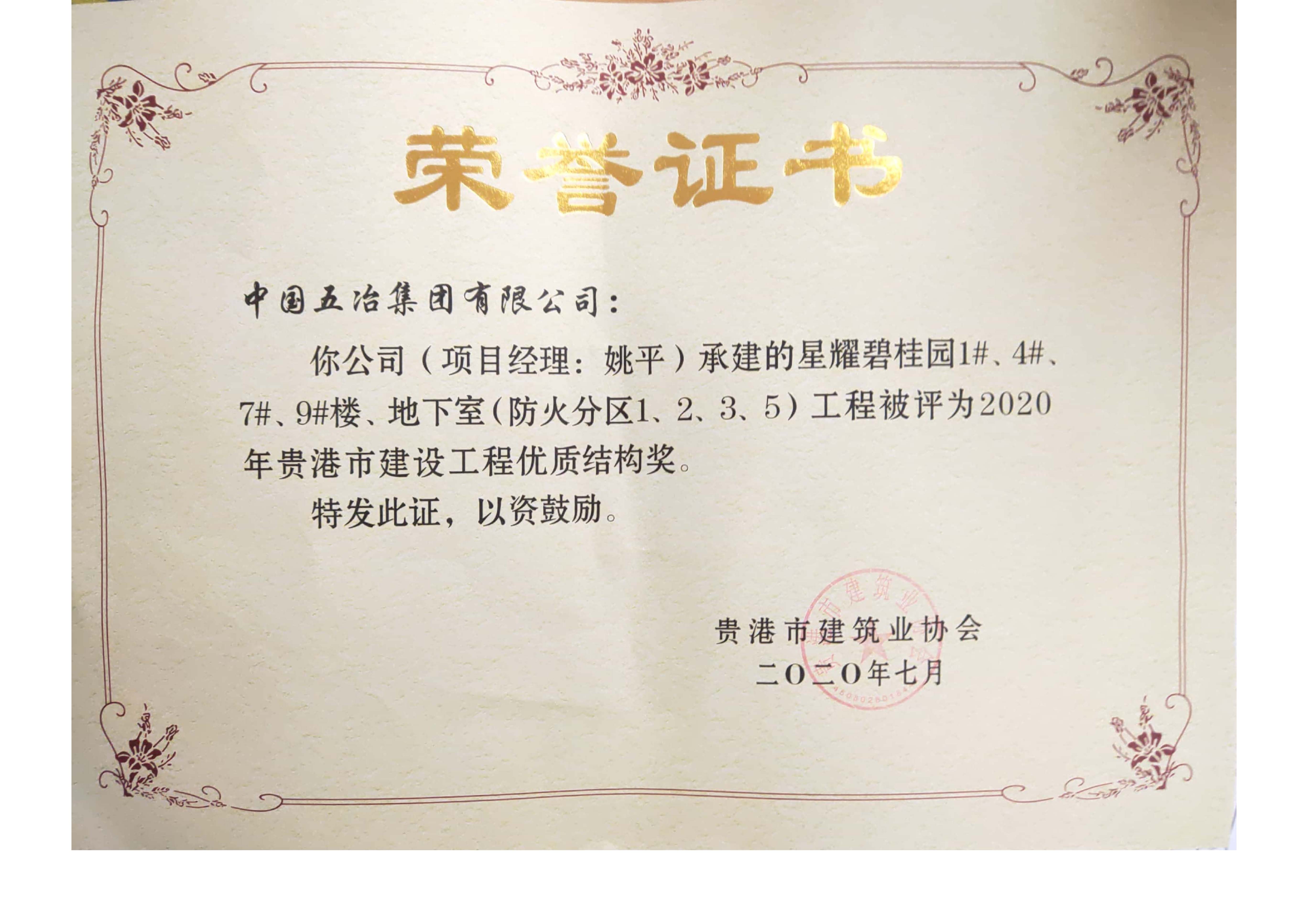星耀碧桂園1#、4#、7#、9#、地下室工程—2020年貴港市建設(shè)工程優(yōu)質(zhì)結(jié)構(gòu)獎