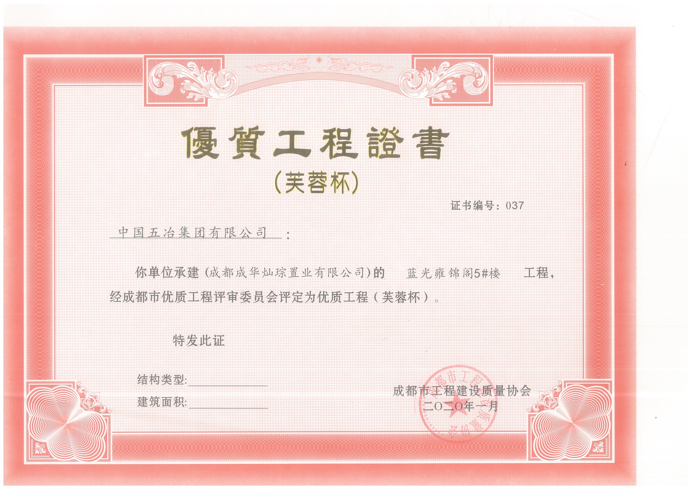 藍(lán)光雍錦閣—2019年度芙蓉杯證書