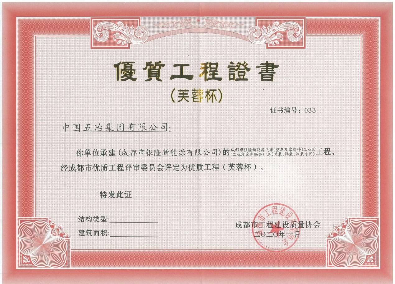 成都市銀隆新能源汽車(整車及零部件)工業(yè)園二標(biāo)段客車聯(lián)合廠房(總裝、焊裝、涂裝車間)項(xiàng)目-2019年度芙蓉杯