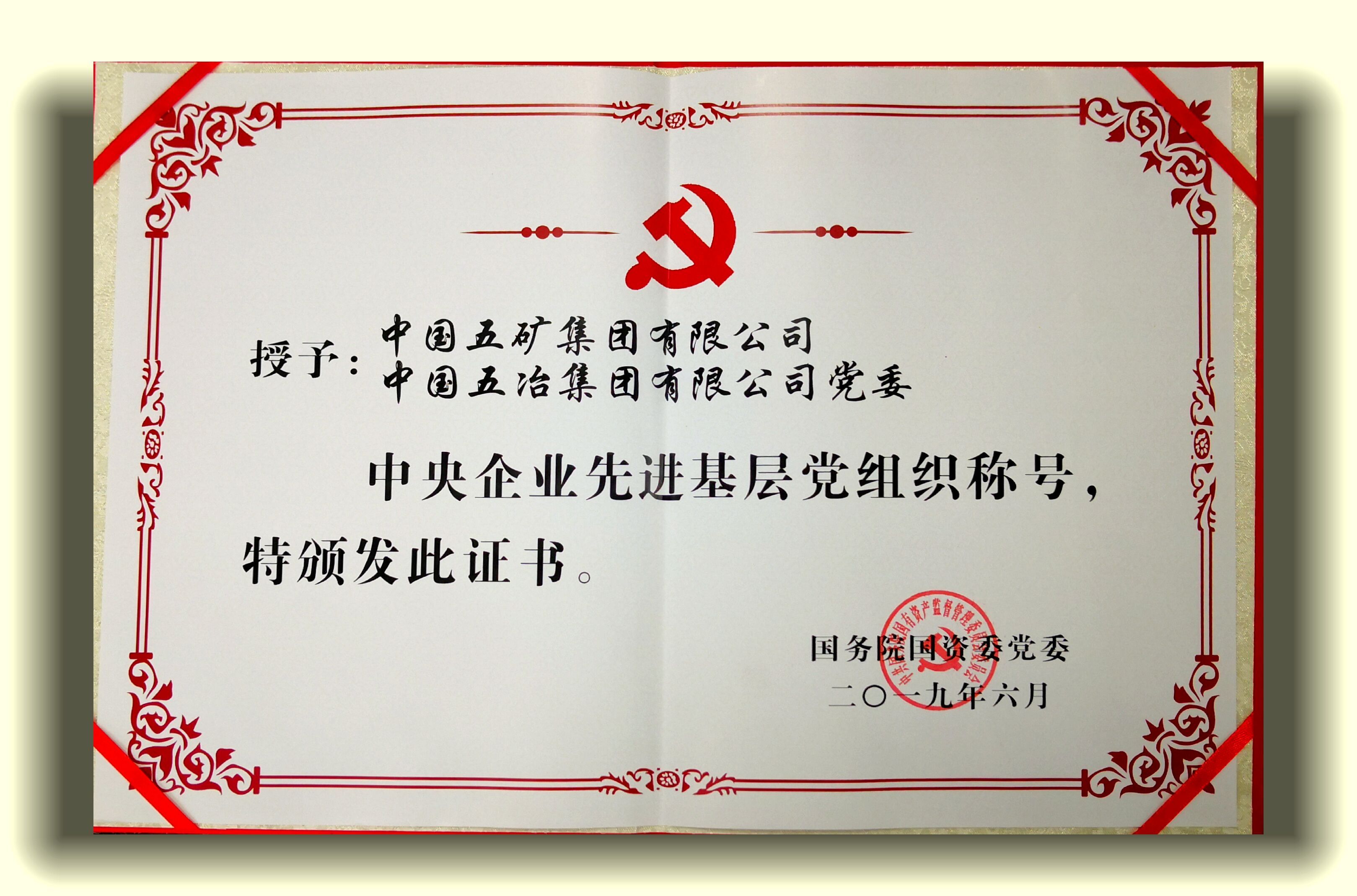 中央企業(yè)先進基層黨組織稱號