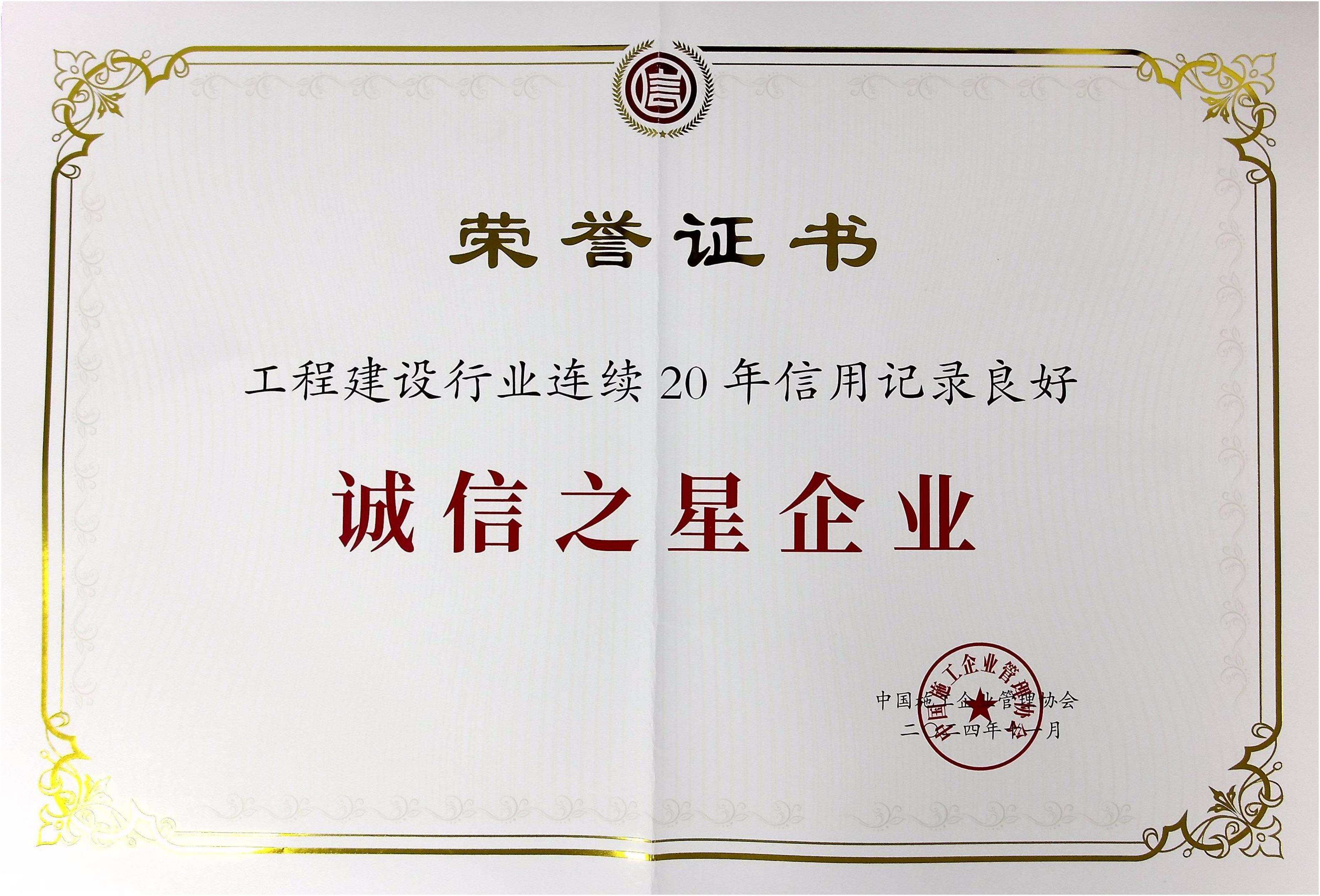 中國工程建設行業(yè)連續(xù)20年信用記錄良好誠信之星企業(yè)