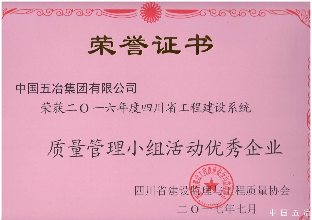 四川省工程建設(shè)系統(tǒng)質(zhì)量管理小組活動優(yōu)秀企業(yè)