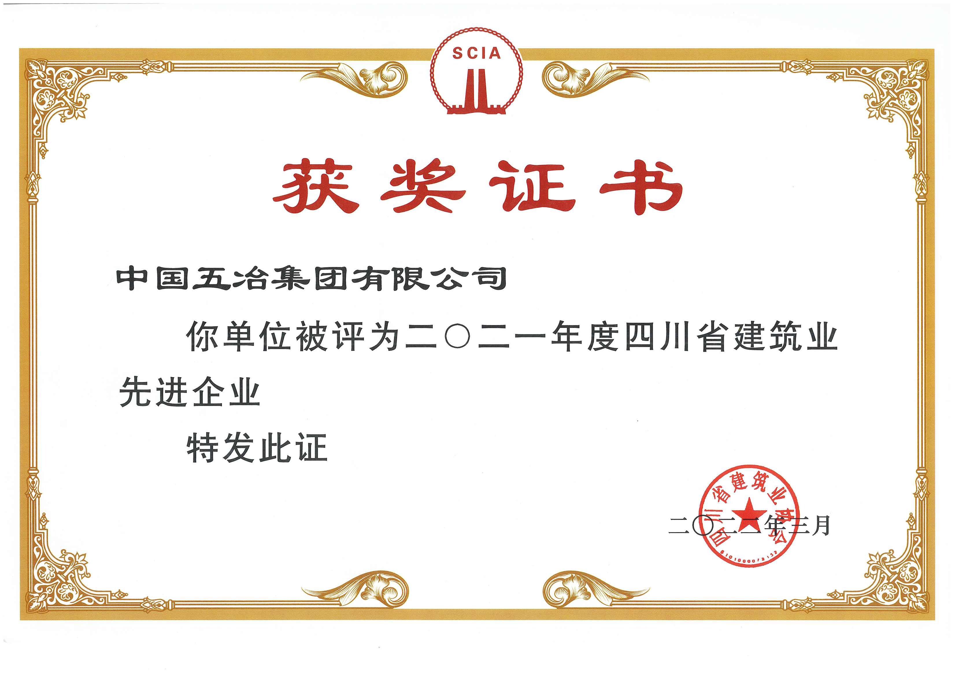 成都市建筑業(yè)先進企業(yè)(2021年度)