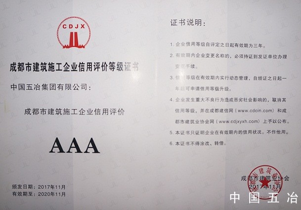 成都市建筑施工企業(yè)信用評(píng)價(jià)AAA等級(jí)證書
