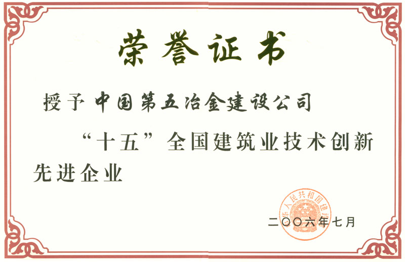 “十五”全國建筑業(yè)技術(shù)創(chuàng)新先進(jìn)企業(yè)