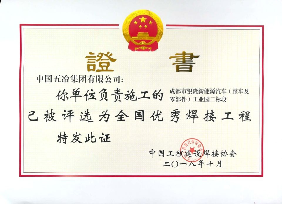 成都市銀隆新能源汽車(chē)(整車(chē)及零部件)工業(yè)園二標(biāo)段-2018年度全國(guó)優(yōu)秀焊接工程