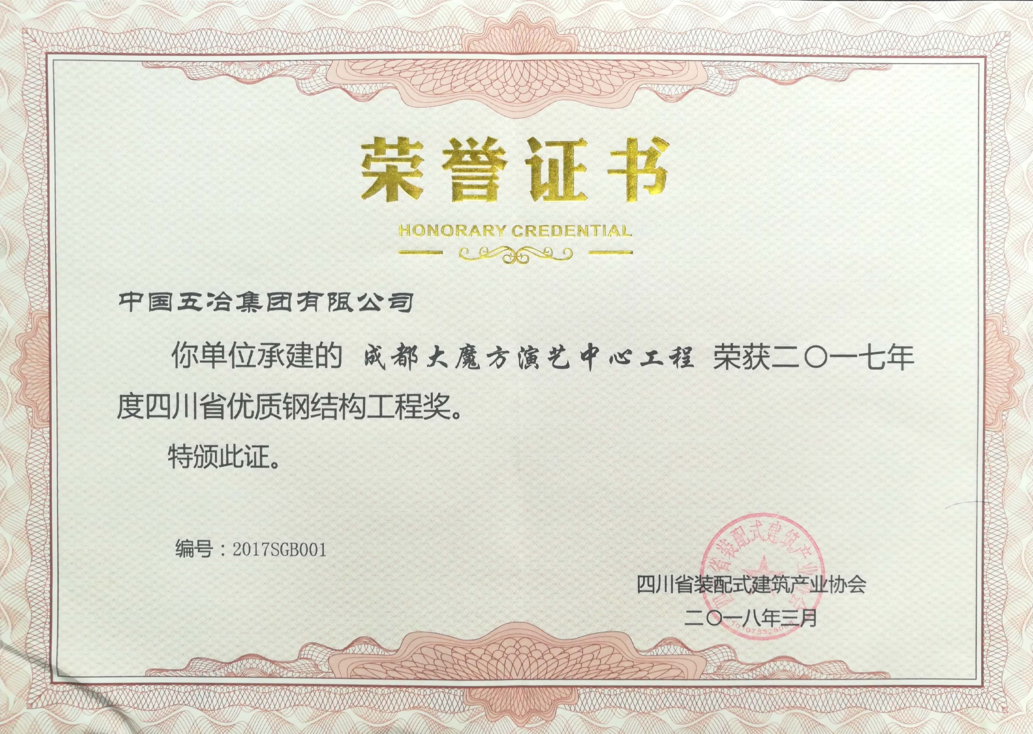 成都大魔方演藝中心項(xiàng)目-2017年度四川省優(yōu)質(zhì)鋼結(jié)構(gòu)工程獎(jiǎng)