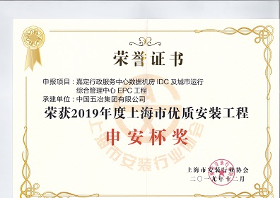 嘉定行政服務中心數(shù)據(jù)機房IDC及城市運行綜合管理中心EPC工程-2019年度上海市優(yōu)質(zhì)安裝工程申安杯獎