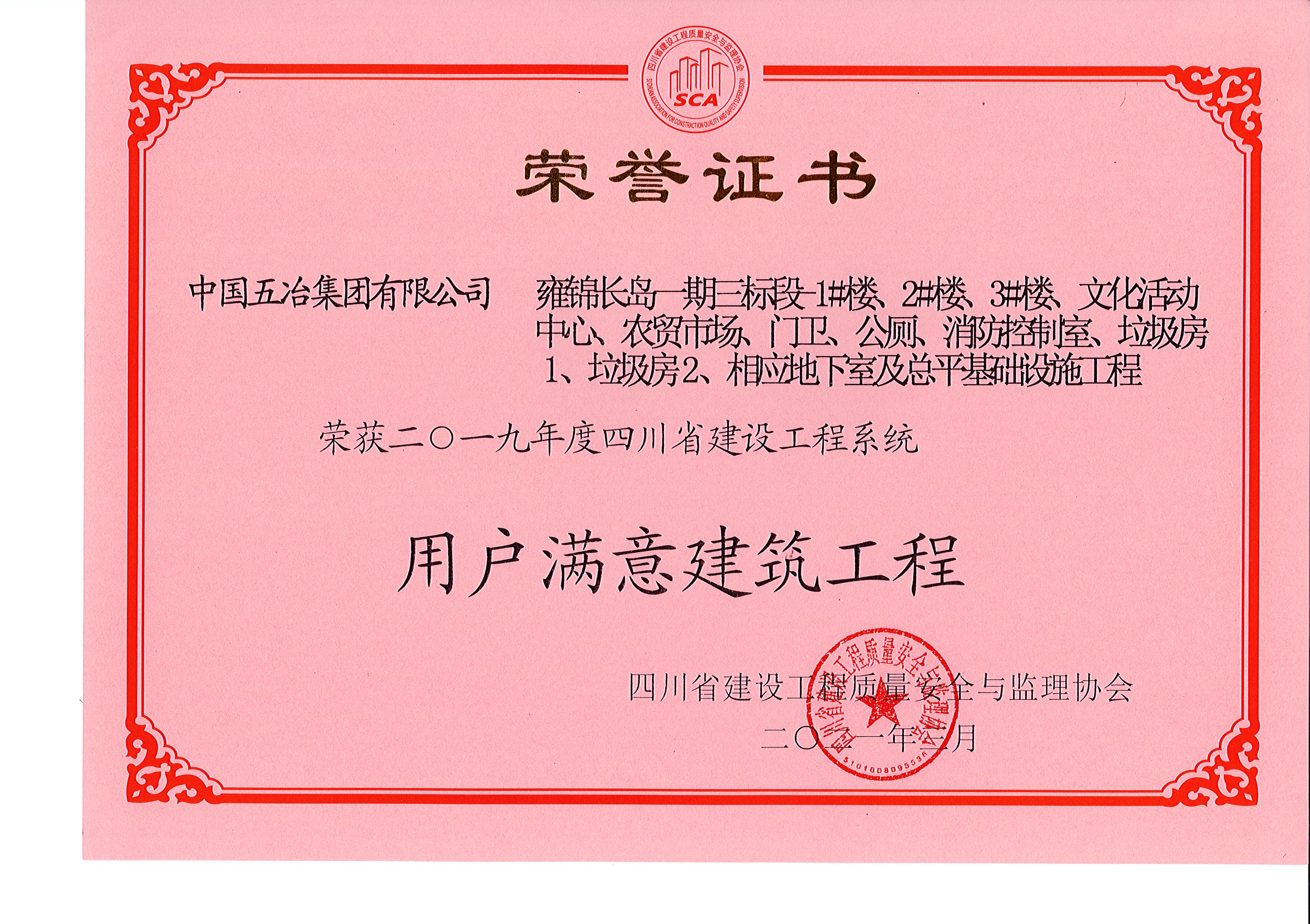 雍錦長島一期三標段1#、2#、3#樓及相應地下室—2019年四川省建設工程系統(tǒng)用戶滿意工程