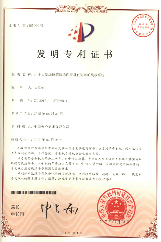 用于大型場館幕墻飾面板垂直運送的裝載系統(tǒng) ZL2015103703681