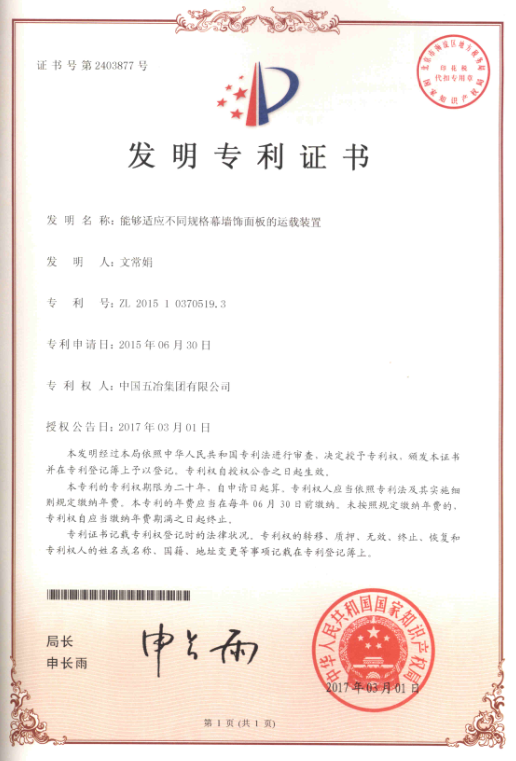 能夠適應(yīng)不同規(guī)格幕墻飾面板的運載裝置 ZL2015103705193