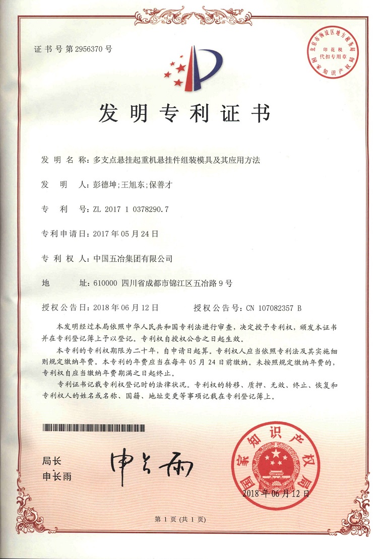多支點懸掛起重機(jī)懸掛件組裝模具及其應(yīng)用方法 ZL 201710378290.7
