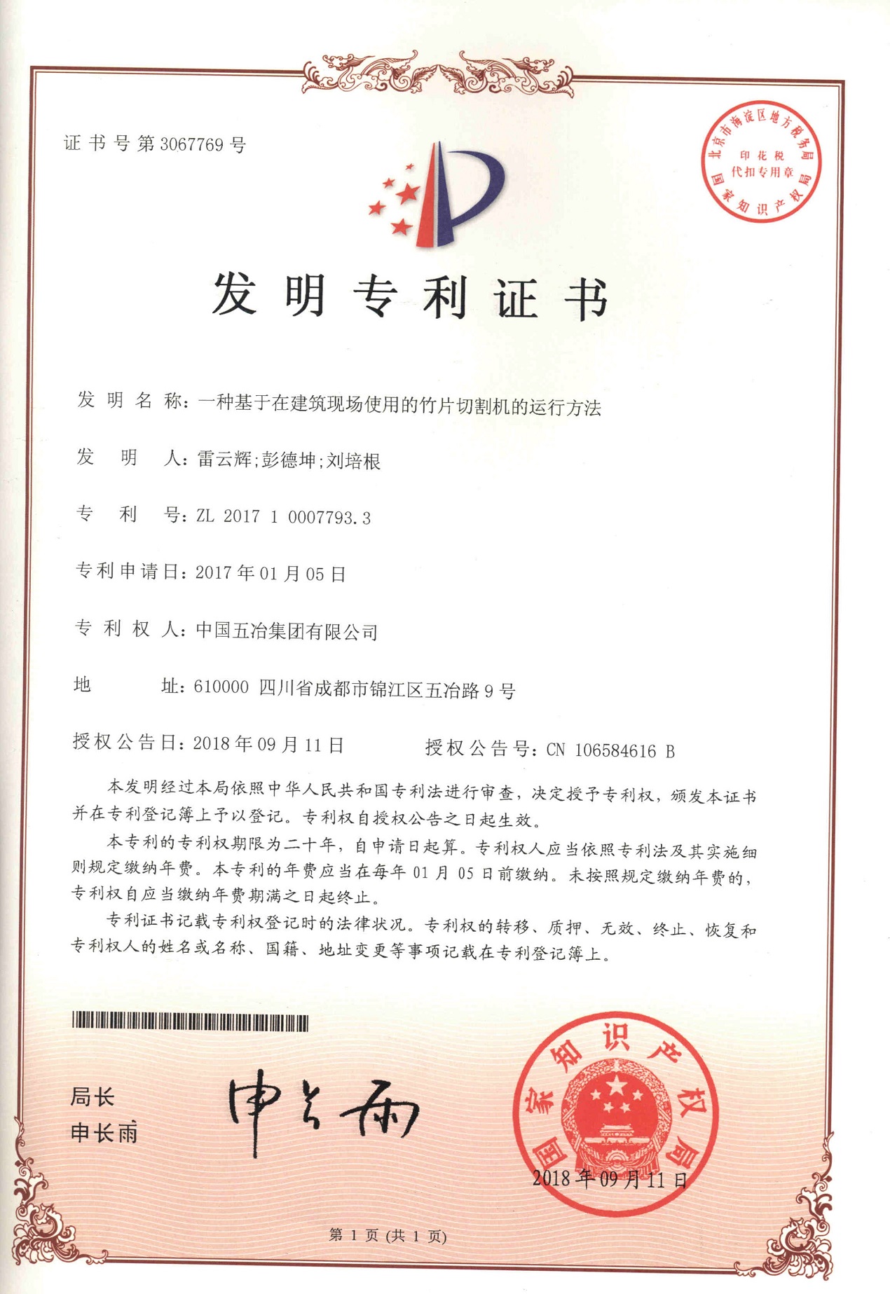 一種基于在建筑現(xiàn)場使用的竹片切割機(jī)的運行方法 ZL 201710007793.3