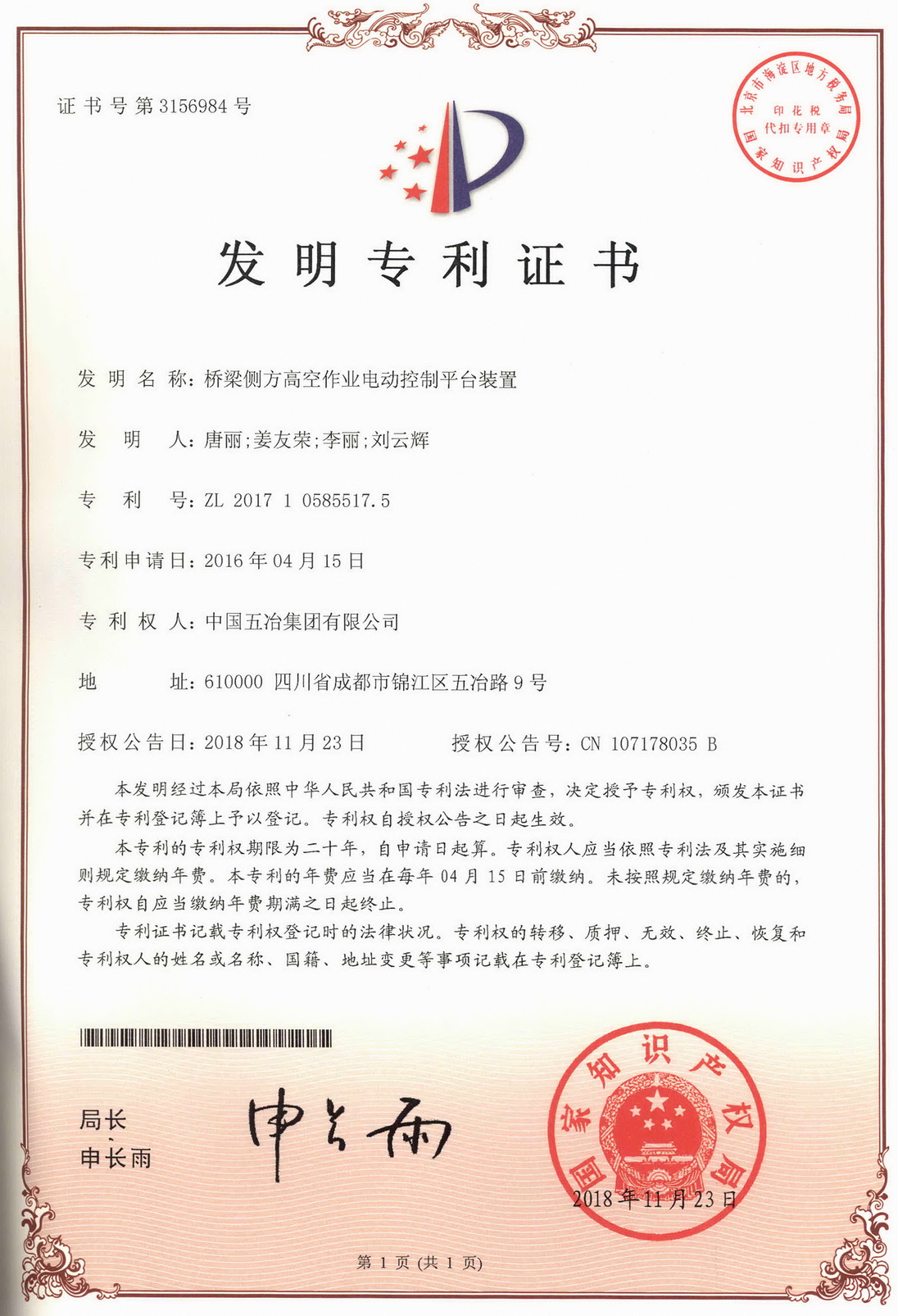 橋梁側(cè)方高空作業(yè)平臺裝置 ZL 201710585517.5