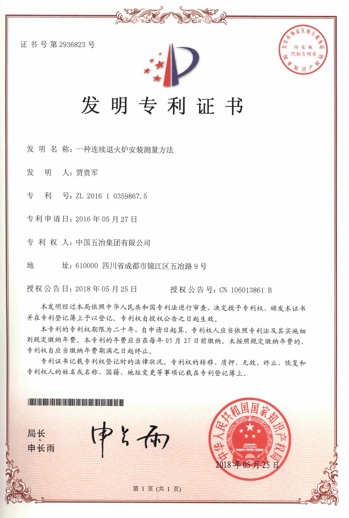 一種連續(xù)退火爐安裝測量方法 ZL 201610359867.5