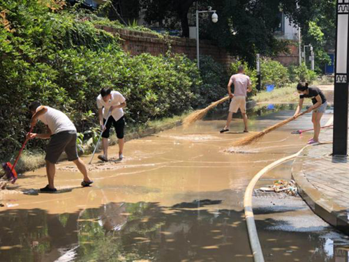 8月19日,洪水漸退,項(xiàng)目負(fù)責(zé)人組織大家一起手拎肩扛,共同協(xié)作,開始從受災(zāi)較重的演武街停車場(chǎng)、九碼頭公廁、王浩兒公廁等項(xiàng)目進(jìn)行清淤排險(xiǎn)工作。