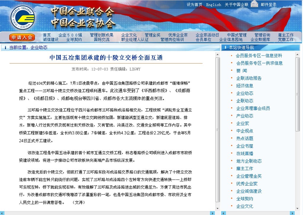 中國企業(yè)聯(lián)合會報道:中國五冶集團承建的十陵立交橋全面互通