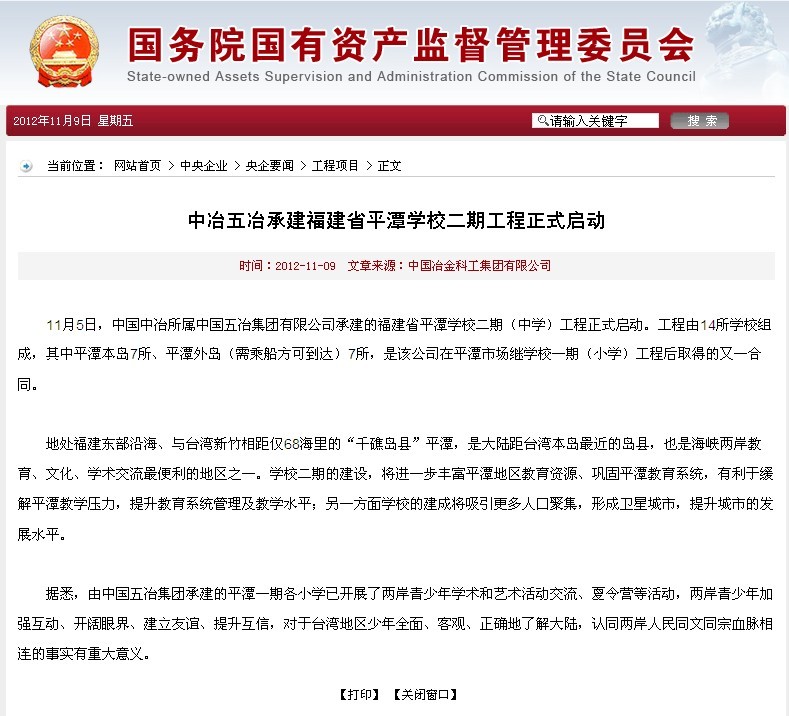國資委報道:中冶五冶承建福建省平潭學校二期工程正式啟動