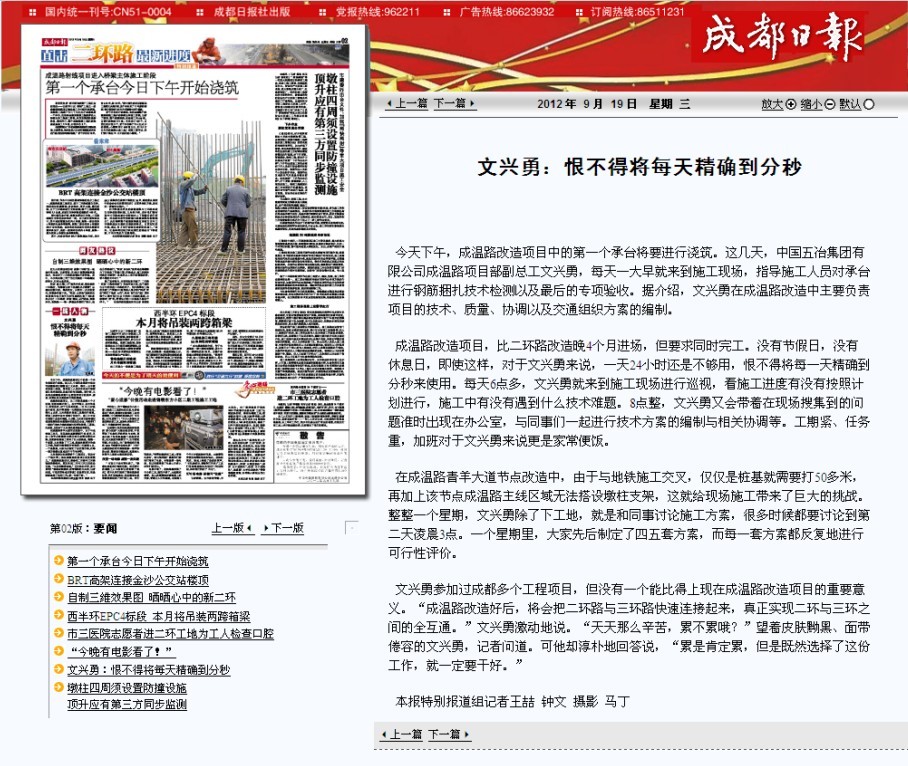 上一篇:天府早報(bào)報(bào)道:成溫路射線首個(gè)承臺今日澆筑