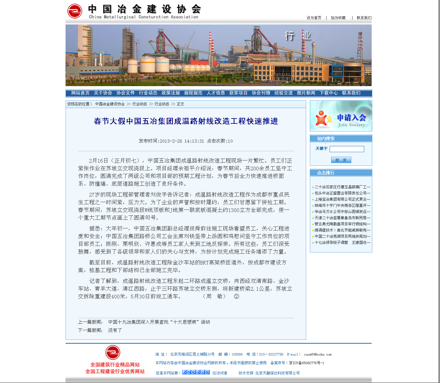 中國冶金建設(shè)協(xié)會報道:春節(jié)大假中國五冶集團成溫路射線改造工程快速推進