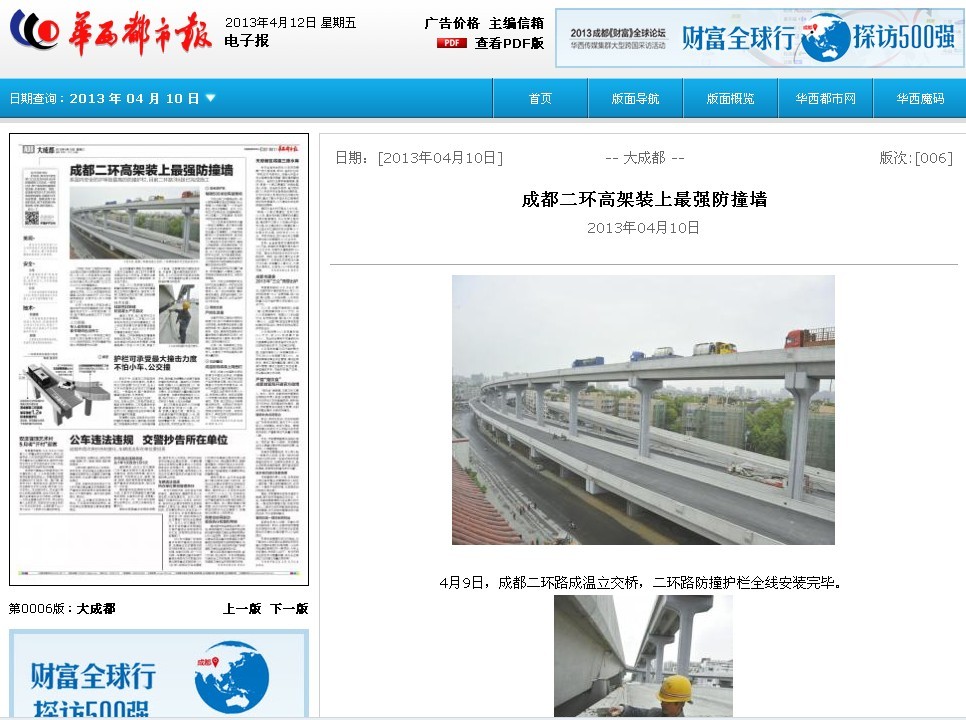 上一篇:天府早報報道:二環(huán)路首段高架防撞墻亮相
