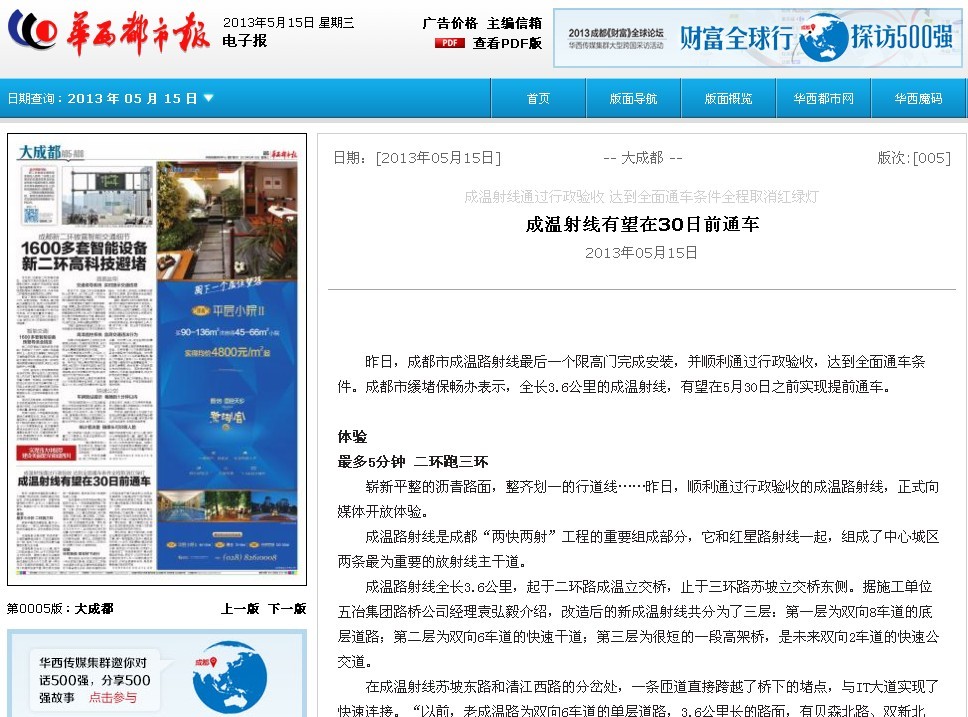 下一篇:成都商報(bào)報(bào)道:成溫射線有望提前通車(chē)