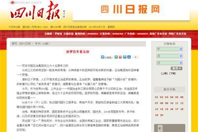 10月17日,四川日?qǐng)?bào)以《逐夢(mèng)百年看五冶》為題對(duì)中國(guó)五冶集團(tuán)進(jìn)行了整版重點(diǎn)報(bào)道,內(nèi)文以“開啟夢(mèng)想、跨越之夢(mèng)、騰飛之夢(mèng)”回顧了中國(guó)五冶集團(tuán)六十五周年的發(fā)展歷程,并對(duì)建設(shè)百年五冶的偉大目標(biāo)進(jìn)行了展望。