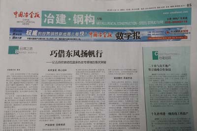11月1日,《中國冶金報(bào)》05版品牌之路欄目以“巧借東風(fēng)揚(yáng)帆行”為題,對(duì)中國五冶集團(tuán)在燒結(jié)低溫余熱發(fā)電領(lǐng)域首次突破進(jìn)行了詳細(xì)報(bào)道。