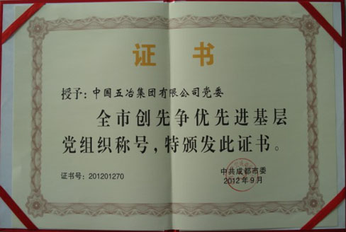 ??? 近日,中共成都市委對(duì)2010-2012年度全市創(chuàng)先爭(zhēng)優(yōu)先進(jìn)基層黨組織和優(yōu)秀共產(chǎn)黨員進(jìn)行了表彰,中國(guó)五冶集團(tuán)有限公司黨委被授予了“全市創(chuàng)先爭(zhēng)優(yōu)先進(jìn)基層黨組織”稱號(hào)。
