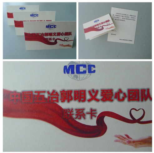 ????? 在全國(guó)廣泛深入持久地開展學(xué)雷鋒活動(dòng)之際,公司團(tuán)委不僅制定了志愿服務(wù)年度工作計(jì)劃,還號(hào)召公司青年向新時(shí)期雷鋒精神的傳承者郭明義同志學(xué)習(xí),并組建了一支由百余名青年組成的“郭明義愛心團(tuán)隊(duì)”,圍繞公司生產(chǎn)經(jīng)營(yíng)廣泛開展“崗位學(xué)雷鋒、爭(zhēng)做好員工”活動(dòng)。為使活動(dòng)落到實(shí)處,起到實(shí)效,公司團(tuán)委設(shè)計(jì)制作了“中國(guó)五冶郭明義愛心團(tuán)隊(duì)聯(lián)系卡”,做為愛心傳遞的有效載體發(fā)放到職工手中。