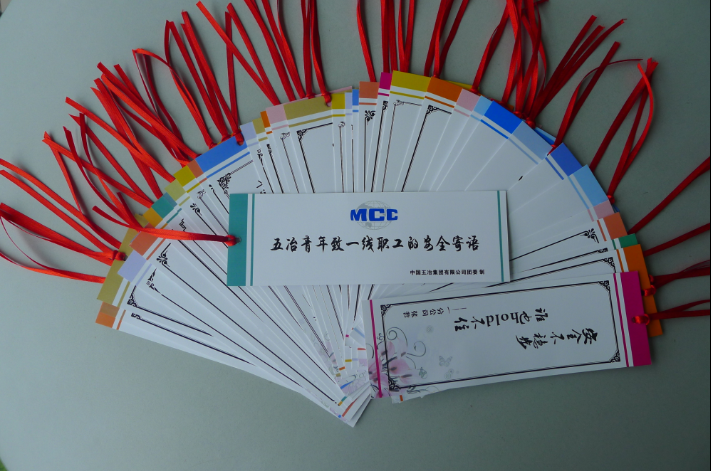 ??????? 8月7日上午,一種設(shè)計(jì)獨(dú)特新穎、制作精美的書簽式安全寄語卡送到了元華路項(xiàng)目30多位職工的手中。這是公司團(tuán)委經(jīng)過2個(gè)月的廣泛征集和設(shè)計(jì)制作,最終形成的“五冶青年致一線職工的安全寄語”書簽卡。從現(xiàn)在起,這些小巧而精美的卡片將陸續(xù)送到公司川滬兩地施工現(xiàn)場(chǎng)。