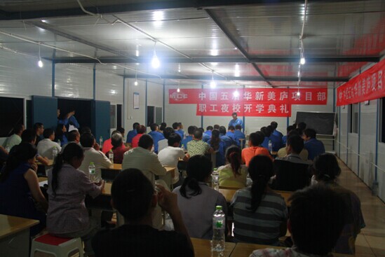 9月1日,在這個(gè)全國(guó)大大小小學(xué)校開(kāi)學(xué)的日子,一公司華新美廬項(xiàng)目部職工夜校也迎來(lái)了第一批“學(xué)生”。晚上七點(diǎn)半,華新美廬項(xiàng)目部管理人員、民工,一公司黨群部、安全部、人力資源部代表共七十余人著工裝整齊入場(chǎng),華新美廬項(xiàng)目部“職工夜校”開(kāi)學(xué)典禮拉開(kāi)了序幕。