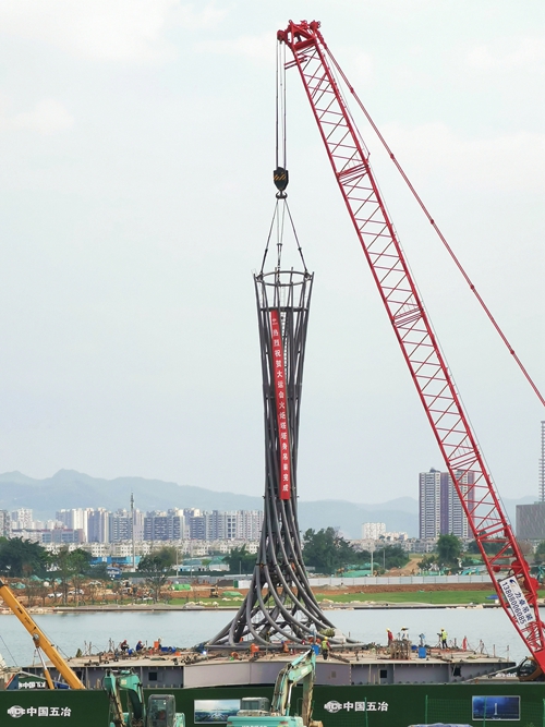 7月3日,由中國五冶集團承建的東安湖火炬塔項目塔身鋼結(jié)構(gòu)已全部吊裝完成,“大運之光”初具雛形,下一步將移交后期的裝飾裝修環(huán)節(jié)。