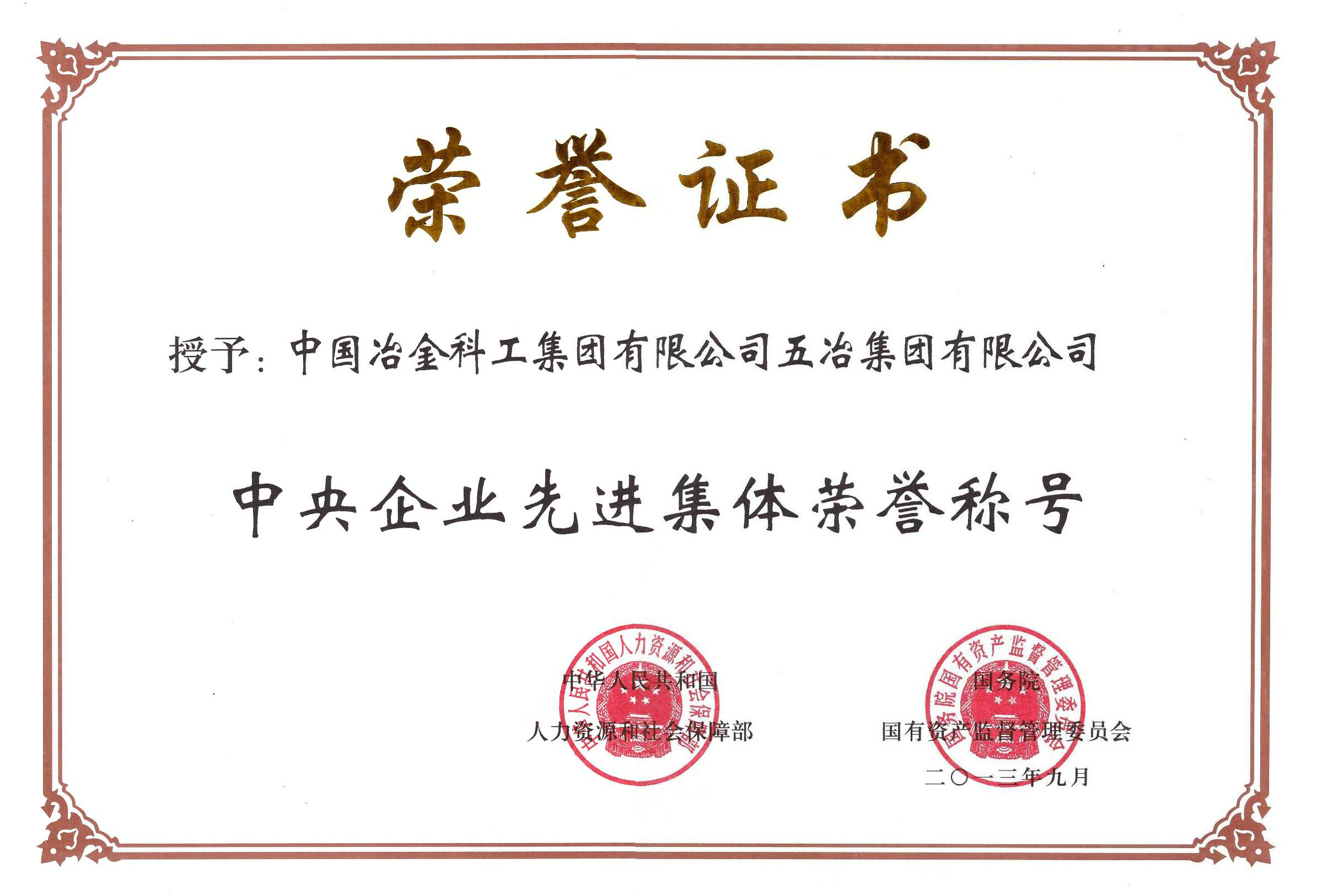 ????2013年10月15日,國(guó)務(wù)院國(guó)資委授予中國(guó)五冶集團(tuán)有限公司“中央企業(yè)先進(jìn)集體”稱(chēng)號(hào)。