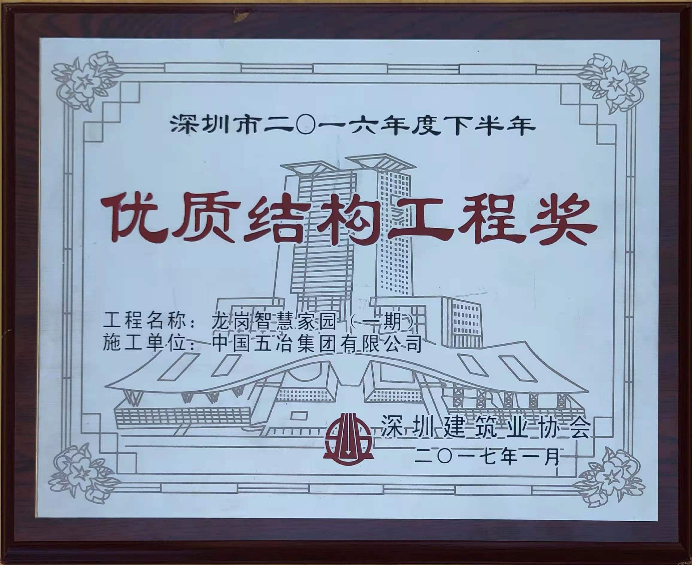 龍崗智慧家園(一期)工程榮獲二零一六年度下半年深圳市優(yōu)質(zhì)結(jié)構(gòu)工程獎(jiǎng)
