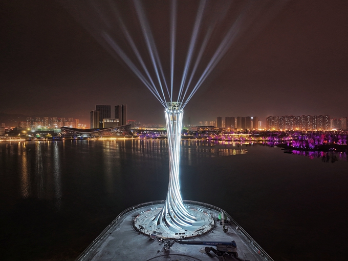 火炬塔照明控制系統(tǒng)采用模塊控制方式,選用高效節(jié)能、壽命長的光源,可以實現(xiàn)自動開關(guān)、根據(jù)環(huán)境劃分場景等功能,并可根據(jù)實際情況設(shè)置日常、節(jié)假日、重大節(jié)日等不同模式。大運會期間將開啟大運“專屬”模式,火炬塔承載圣火,賽后利用全息投影技術(shù)在夜間重現(xiàn)大運圣火燃燒的時刻,成為東安湖公園“世界會客廳”的獨特風(fēng)景;平時將開啟日常模式,采用高空投射燈射向夜空,在開闊的周邊環(huán)境中璀璨奪目,成為蓉城夜間標(biāo)志性的網(wǎng)紅打卡點。