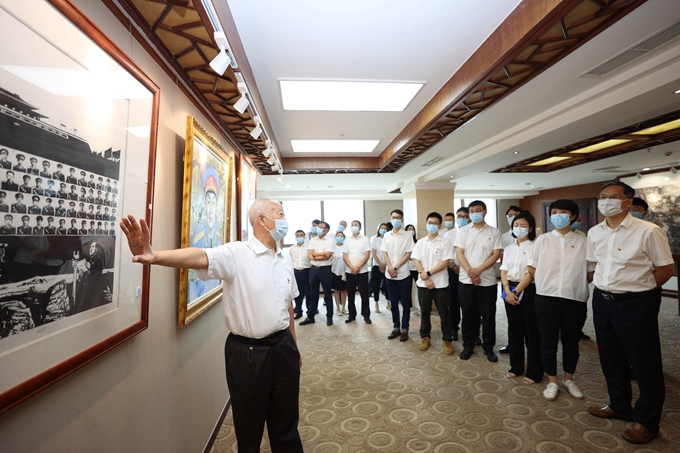 美術(shù)作品展開幕當(dāng)天,四海畫院名譽(yù)院長李任仕同志向公司黨員干部詳細(xì)介紹了每幅作品的歷史背景和人物故事,以點帶面生動再現(xiàn)了各個時代川渝籍共產(chǎn)黨人的光輝事跡和黨史人物的鮮活形象,謳歌了巴蜀大地的百年黨史和前輩們的豐功偉績。