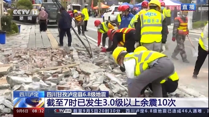 央視《朝聞天下》報道馳援四川甘孜瀘定地震畫面