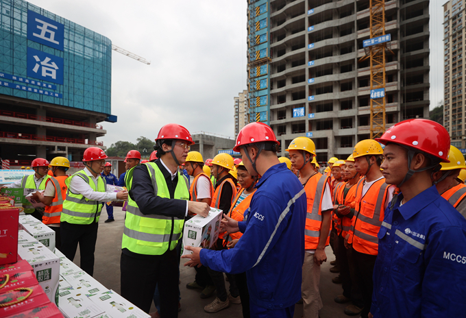 朱永繁董事長一行先后來到宜賓起步廣場、檬子灣安置房、三江新區(qū)大健康醫(yī)療產(chǎn)業(yè)補短板、三江之眼、高新區(qū)產(chǎn)業(yè)新城標(biāo)準廠房,成都新都區(qū)三河保障性租賃住房、香悅置業(yè)同仁村42畝房地產(chǎn)開發(fā)等7個項目現(xiàn)場,仔細檢查安全生產(chǎn)工作落實和執(zhí)行是否到位,詳細了解項目策劃、工期、技術(shù)、質(zhì)量、經(jīng)營等管理情況,并向一線員工送上牛奶、面包、果汁、方便面、礦泉水等慰問品,對大家在節(jié)日期間堅守崗位、辛勤工作表示問候。