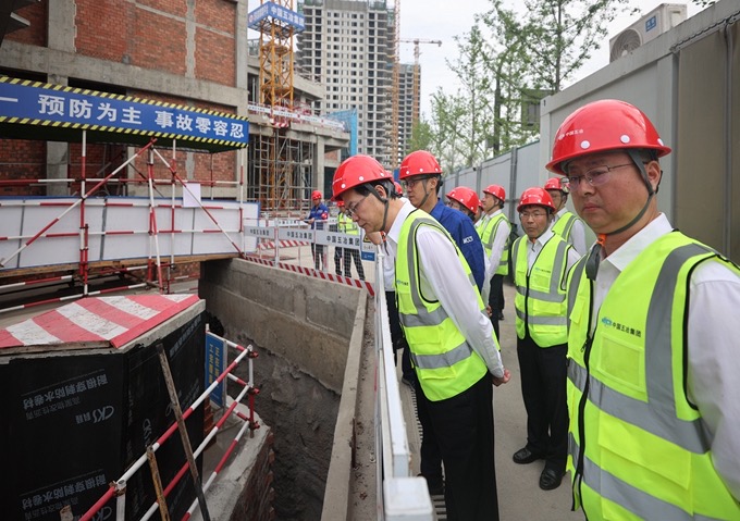 5月3日,“五一”國際勞動(dòng)節(jié)期間,集團(tuán)公司黨委書記、董事長朱永繁一行以“四不兩直”方式前往項(xiàng)目現(xiàn)場(chǎng)開展帶班檢查。集團(tuán)公司領(lǐng)導(dǎo)代小強(qiáng)、張家元,副總經(jīng)濟(jì)師李吉輝,項(xiàng)管部、安監(jiān)部、質(zhì)環(huán)部、科技部、辦公室負(fù)責(zé)人,一公司、裝飾公司、市政公司、十二公司總經(jīng)理參加檢查。