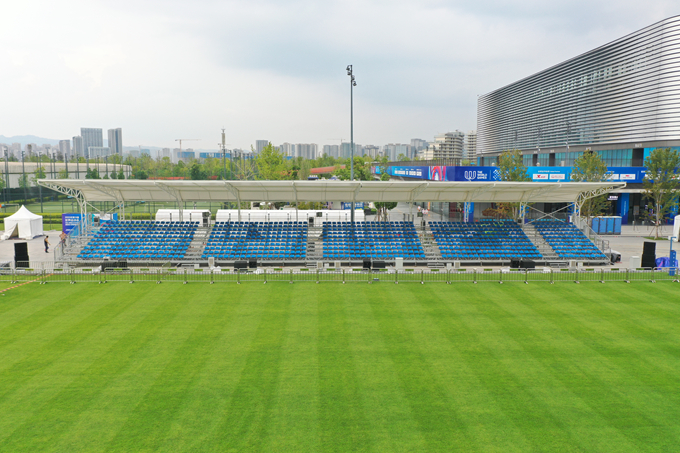 世運會射箭、拔河等比賽觀眾席設置在成都東安湖體育公園中央廣場、青龍湖濕地公園,超1萬名海內(nèi)外觀眾在這里吶喊歡呼。為支撐世運會觀賽需求,五冶建設者掛圖作戰(zhàn),倒排工期,全力以赴,攻堅克難,在7天之內(nèi)完成了964平方米棚蓋建設,覆蓋1060個看臺席位,全部采用裝配式鋼結構施工,最大限度降低對公園生態(tài)環(huán)境影響,賽后可快速拆除回收利用,做到安全環(huán)保。