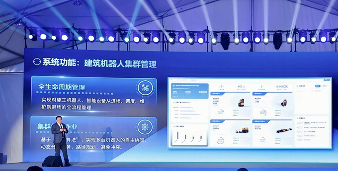 現(xiàn)場觀摩環(huán)節(jié),與會嘉賓觀近距離觀看了機器人集群智能調度管理系統(tǒng)和4款智能建造機器人在模擬施工環(huán)境中高效配合、聯(lián)動作業(yè)的實景演示,感受智能建造科技在提高施工效率、保障人員安全、提升建筑品質、降低建設成本等方面的優(yōu)異表現(xiàn)。