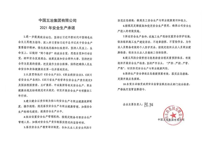 中國五冶集團有限公司2021年安全生產(chǎn)承諾
