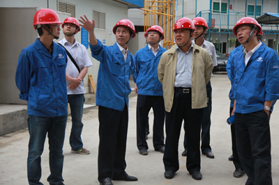 程并強(qiáng)深入現(xiàn)場(chǎng)詳細(xì)詢問了工程概況以及目前工程的進(jìn)展情況,在聽取了工程介紹后,對(duì)項(xiàng)目部所作的工作給予了肯定,尤其是在仔細(xì)查看了公司自己設(shè)計(jì)的西南最遠(yuǎn)第一懸挑:即懸挑最遠(yuǎn)處為27.8米,最大單重18噸的構(gòu)件后非常滿意。