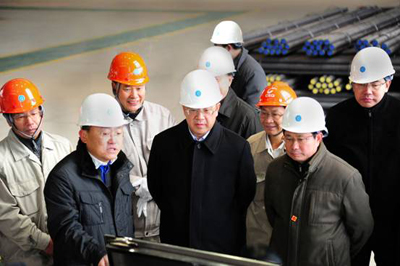廣東省委書記胡春華正在視察中國五冶集團(tuán)承建的廣東韶鋼特棒項目