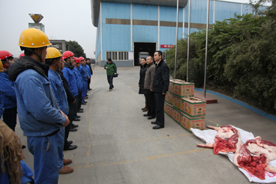 12月29日,中國五冶集團董事、黨委副書記、總經(jīng)理蒙昌嘉,副總經(jīng)理田舜,工會副主席張瑤一行趕赴公司在蓉部分項目部和生產(chǎn)車間,慰問節(jié)日期間仍戰(zhàn)斗在一線的公司員工,并為大家送上了豬肉、水果等慰問品。