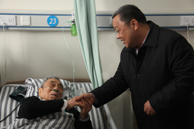 在92歲高齡離休老干部邵佐病床前,程并強(qiáng)關(guān)切地對(duì)邵老說,“公司時(shí)刻惦記著你們,希望您老健康長(zhǎng)壽”!他詳細(xì)了解了邵老的身體狀況,叮囑公司離退休管理部同志,要切實(shí)做好老同志的服務(wù)工作,關(guān)心他們的身體健康,解決他們的實(shí)際困難,把組織的溫暖及時(shí)送到他們身邊?!?/span>